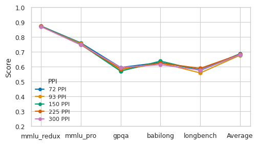 It turns out that resolution, for current VLMs, indeed matters very little: Gemini 2.0 Flash performs more or less exactly the same at 72 PPI as it does at 300 PPI. This is an interesting finding, as it confirms a lot of what we know about “vision” models, but is not aligned with recent results in multimodal retrieval, which seemed to imply that higher resolutions lead to better retrieval quality (although, the model used in this study being a late interaction model, it might be because it allows for more fine-grained scoring due to how MaxSim works).